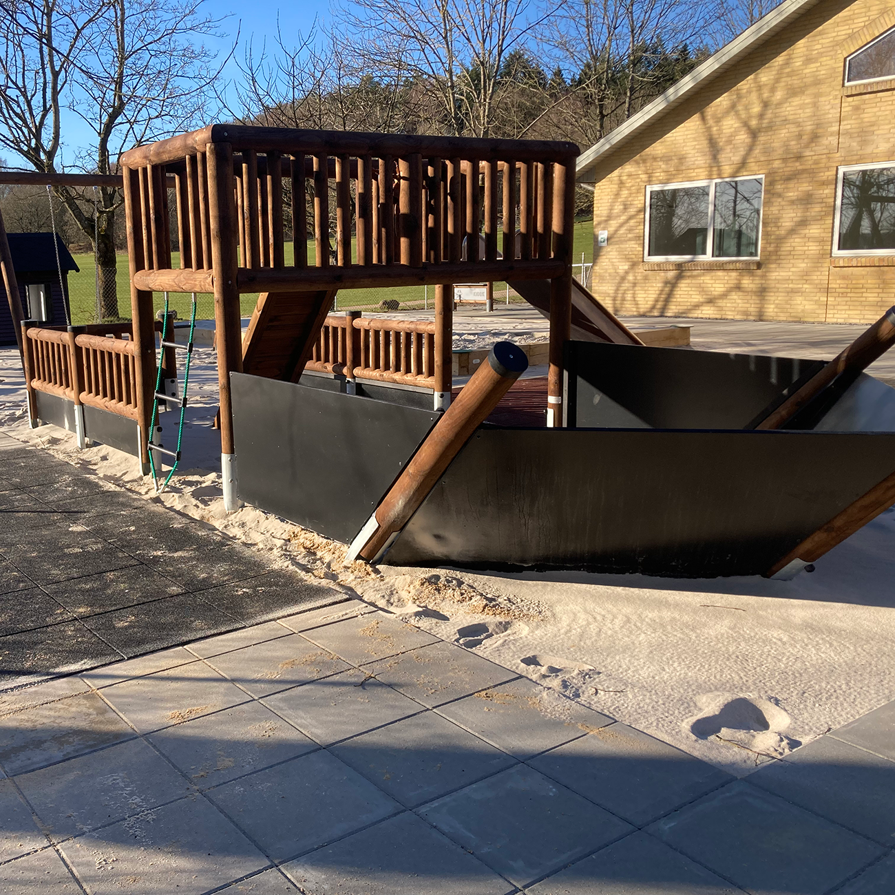 Skibet er fyldt op med sand og fungerer som sandkasse.
